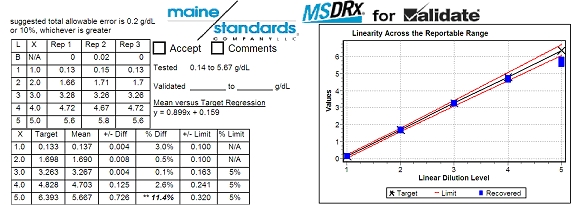 LGC Maine Standards' VALIDATE® products are excellent for this testing and allow you to maximize your reportable range with no dilutions.